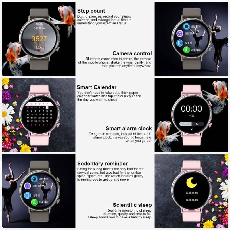 14. Λειτουργία: Παρακολούθηση καρδιακού ρυθμού όλη την ημέρα (συναγερμός ανώμαλου καρδιακού ρυθμού), παρακολούθηση αρτηριακής πίεσης, 10 ασκήσεις με βάση τον στόχο, παρακολούθηση γυναικείου κύκλου, παρακολούθηση ποιότητας ύπνου, παρακολούθηση βημάτων, παρακολούθηση κατανάλωσης θερμίδων, καθημερινός στόχος βημάτων, ρυθμός σε πραγματικό χρόνο Και απόσταση, γιορτή στόχου, υπενθύμιση κινητού, ειδοποίηση smartphone, απόρριψη/σιγή με ένα κουμπί, πρόγνωση καιρού, αντίστροφη μέτρηση και χρονόμετρο, ξυπνητήρι, πολλαπλά καντράν, εύρεση τηλεφώνου, ανίχνευση περιστροφής καρπού, έλεγχος μουσικής, ανακίνηση φωτογραφίας, κ.λπ.