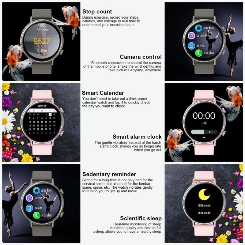 14. Λειτουργία: Παρακολούθηση καρδιακού ρυθμού όλη την ημέρα (συναγερμός ανώμαλου καρδιακού ρυθμού), παρακολούθηση αρτηριακής πίεσης, 10 ασκήσεις με βάση τον στόχο, παρακολούθηση γυναικείου κύκλου, παρακολούθηση ποιότητας ύπνου, παρακολούθηση βημάτων, παρακολούθηση κατανάλωσης θερμίδων, καθημερινός στόχος βημάτων, ρυθμός σε πραγματικό χρόνο Και απόσταση, γιορτή στόχου, υπενθύμιση κινητού, ειδοποίηση smartphone, απόρριψη/σιγή με ένα κουμπί, πρόγνωση καιρού, αντίστροφη μέτρηση και χρονόμετρο, ξυπνητήρι, πολλαπλά καντράν, εύρεση τηλεφώνου, ανίχνευση περιστροφής καρπού, έλεγχος μουσικής, ανακίνηση φωτογραφίας, κ.λπ.