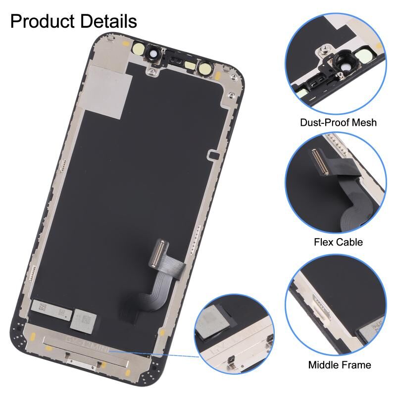 1. Replacement LCD display + touch screen digitizer assembly (OLED material) for iPhone 12 mini.