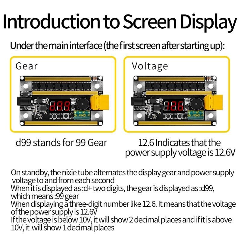 2. Built-in 12-bit high-precision ADC, voltage measurement accuracy of up to 0.01, the voltage can be tested range: 8-24V, connected to the power supply automatically display voltage