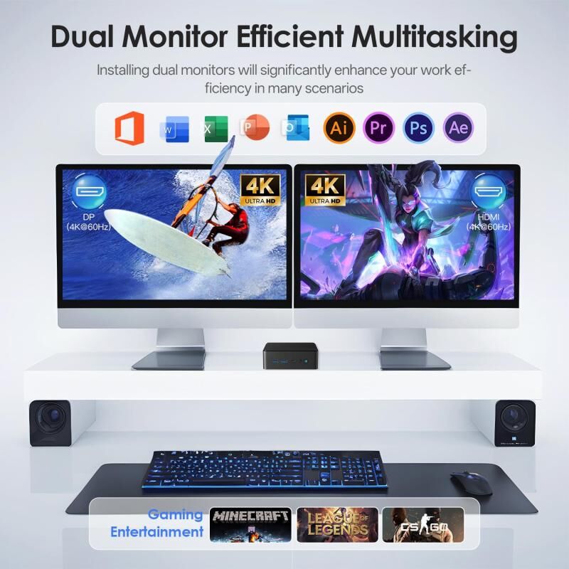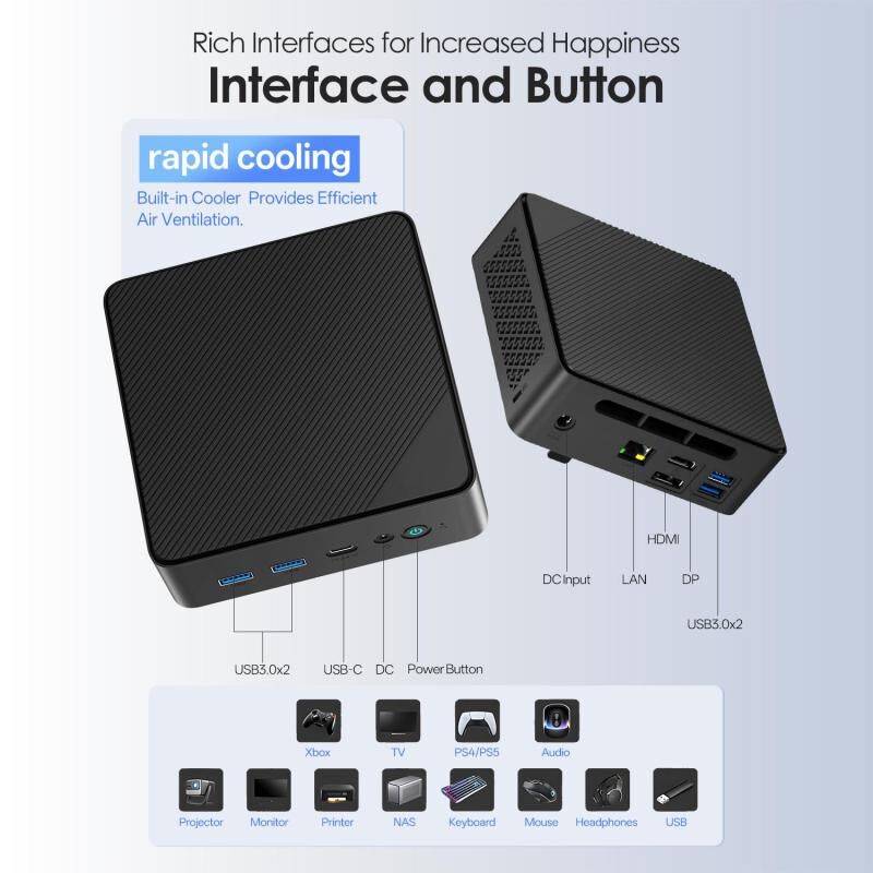 6. Interface: DC port x 1, USB3.0 x 4, 1000M RJ45 x 1, HDMI x 1, DisplayPort x 1, Audio Jack (HP&MIC) x 1, Type-C 2.0 x 1