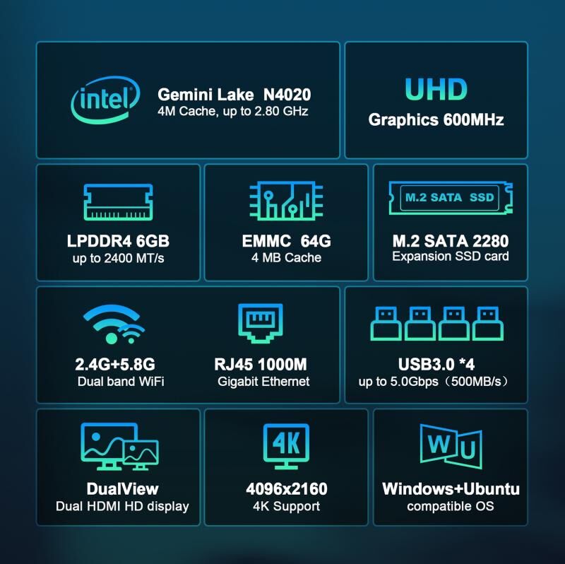5. Wireless LAN: WIFI IEEE802.11blg/n/ac, 2.4G+5.8G BT
