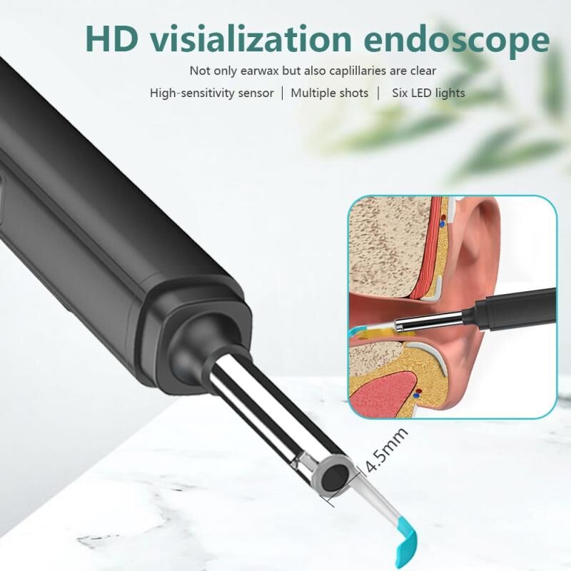 1. Built-in CMOS sensor and six LED cold light lamps, earwax can be seen at a glance, easy to check and clean the ear canal.