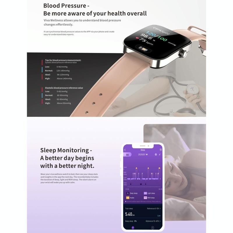 11. Functions: step counting, calories, distance, sedentary reminder, multiple exercise modes, static heart rate, dynamic heart rate, 24-hour heart rate monitoring, heart rate off-hand detection, sleep monitoring, ECG monitoring, blood pressure monitoring, body temperature monitoring, messages Push, message storage, time/date display, custom dial, etc.