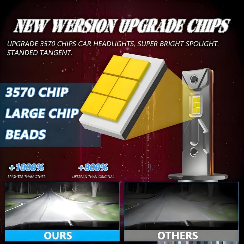 2. Adopt 3570-55mil CSP chip, consistent light point, condense perfect light type, in line with the original car design, high power, high brightness, turn night into day, ensure safe driving, a layer of oil film is attached to the surface of the lamp bead, making the color temperature of the headlight more stable, effectively reducing the light decay rate.