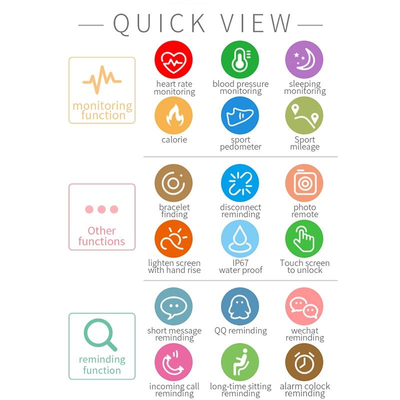 10. Κύρια χαρακτηριστικά: μετρητής βημάτων, θερμίδες, χιλιόμετρα, παρακολούθηση ύπνου, παρακολούθηση καρδιακού ρυθμού / οξυγόνου αίματος / αρτηριακής πίεσης σε πραγματικό χρόνο, υπενθύμιση μηνυμάτων / κλήσεων, ξυπνητήρι, υπενθύμιση καθιστικής ζωής, ανύψωση χεριού για λήψη φωτογραφίας, κ.λπ.