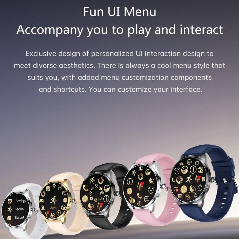 11. Λειτουργίες: καρδιακός ρυθμός, οξυγόνο αίματος, παρακολούθηση ύπνου, εκπαίδευση αναπνοής, παρακολούθηση εμμηνορροϊκού κύκλου, 100+ αθλητικοί τρόποι, κλήσεις Bluetooth, ώθηση πληροφοριών, πρόγνωση καιρού, Alipay, έλεγχος στρες, απομακρυσμένη κάμερα, ξυπνητήρι, χρονόμετρο, κ.λπ.
