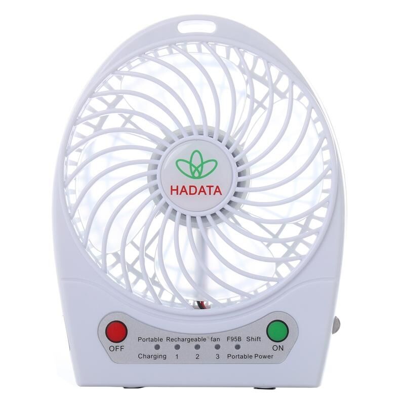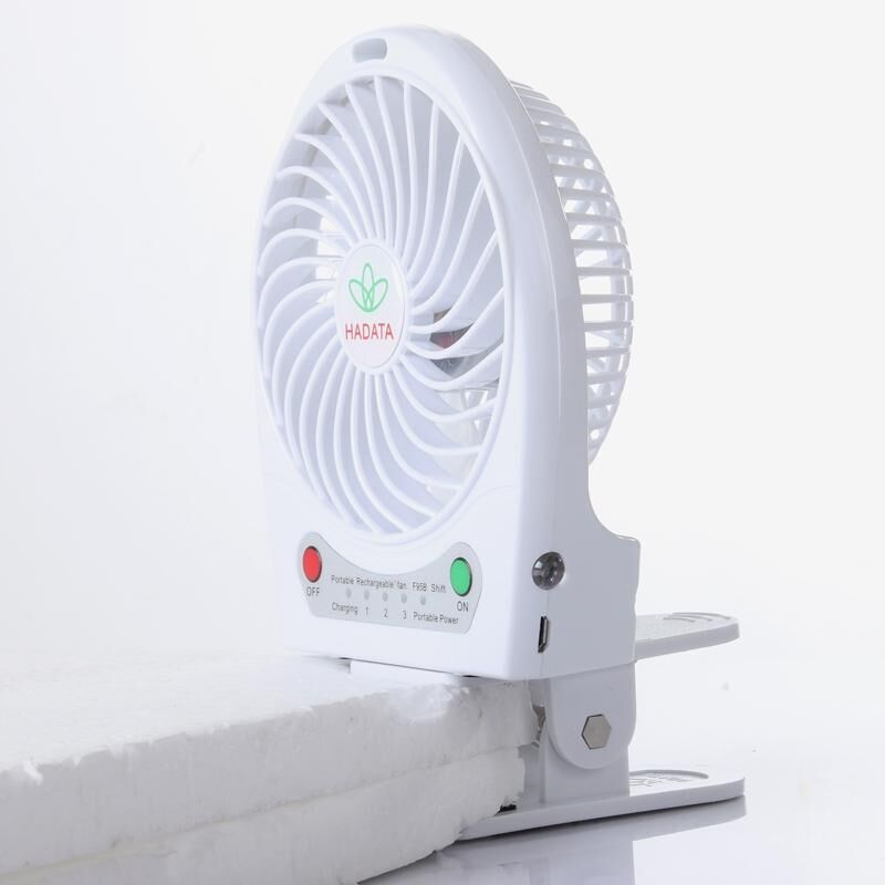 Hadata 4,3 ιντσών φορητός επαναφορτιζόμενος ανεμιστήρας με μπαταρία USB / Li-ion με ρύθμιση τρίτου ταχυτήτων ανέμου και κλιπ (λευκό)