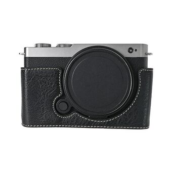 Για FUJIFILM X100VI Γυαλιστερό PU δέρμα φωτογραφικής μηχανής Μισή βάση θήκης (μαύρο)