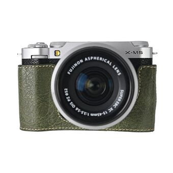 Για FUJIFILM X-T1 Βουβάλι υφή PU δέρμα φωτογραφική μηχανή μισή υπόθεση βάσης (πράσινο)