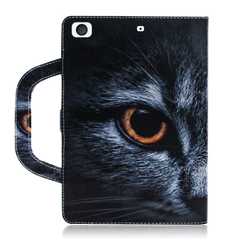 Θήκη δέρματος με σχέδιο γάτας με μισό πρόσωπο, οριζόντια αναστροφή για iPad Mini (2019) / Mini 1 / 2 / 3 / 4, με βάση & υποδοχή κάρτας & πορτοφόλι.