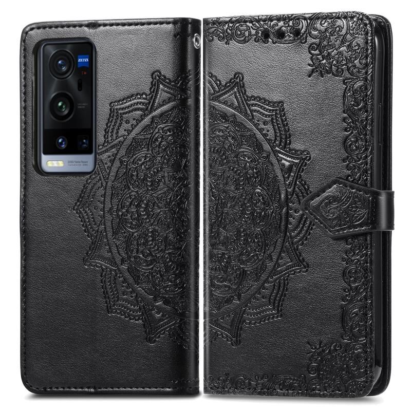 Halfway Mandala ανάγλυφο μοτίβο οριζόντια Flip δερμάτινη θήκη με θήκη & υποδοχές για κάρτες & πορτοφόλι & κορδόνι για το vivo X60 Pro + (μαύρο)