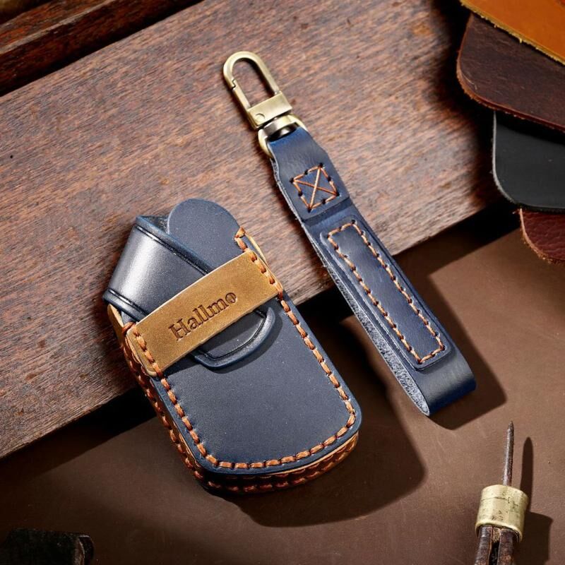 Hallmo Car Cowhide Leather Key Protective Cover for Volkswagen Golf 8(Blue) (Hallmo)
