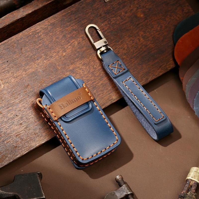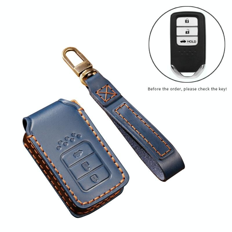 Hallmo Car Cowhide Leather Key Protective Cover Key Case for Honda Civic / Accord 3-button Tail Box(Blue) (Hallmo)