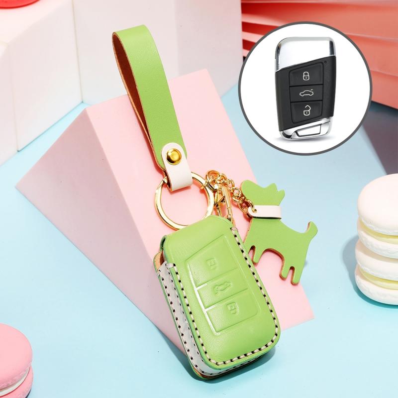 Hallmo Car Female Style Cowhide Leather Key Protective Cover for Volkswagen, A Type(Grass Green) (Hallmo)