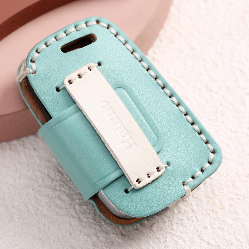 Hallmo Car Female Style Cowhide Leather Key Protective Cover for Volkswagen, A Type(Lake Blue) (Hallmo)