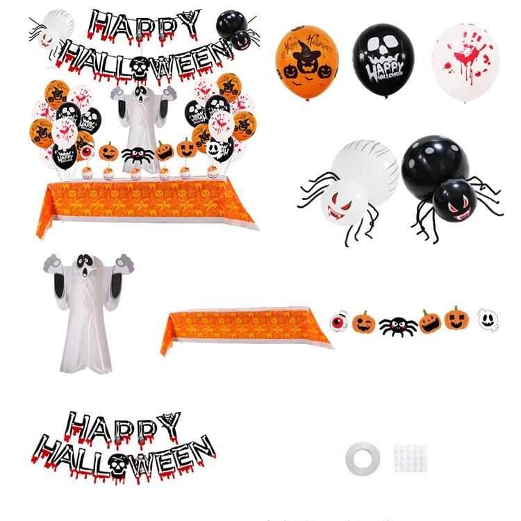 Halloween Balloon Set Blood Color Banner Three-Dimensional Ghost Party Decoration( Pumpkin Tablecloth set)