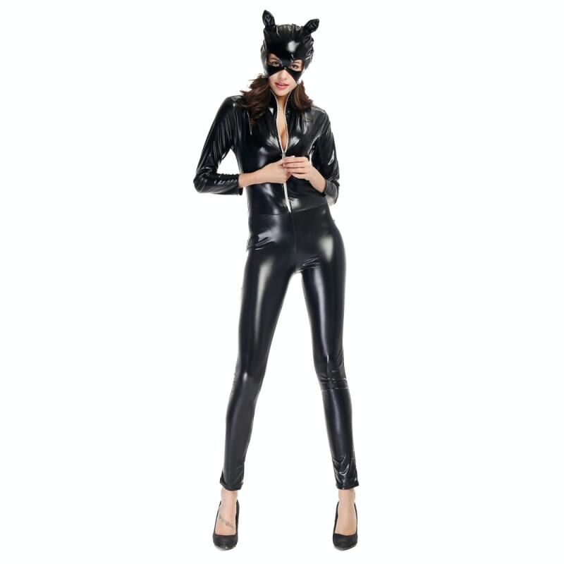 Απόκριες κοστούμι δερμάτινο λουστρίνι γάτα κορίτσι ουδέτερη σέξι μοτοσικλέτα ρούχα σκηνική απόδοση Cosplay ρούχα, μέγεθος: XXL, προτομή: 94-98cm, μέση: 80-84cm, ρούχα μακρύ: 145cm