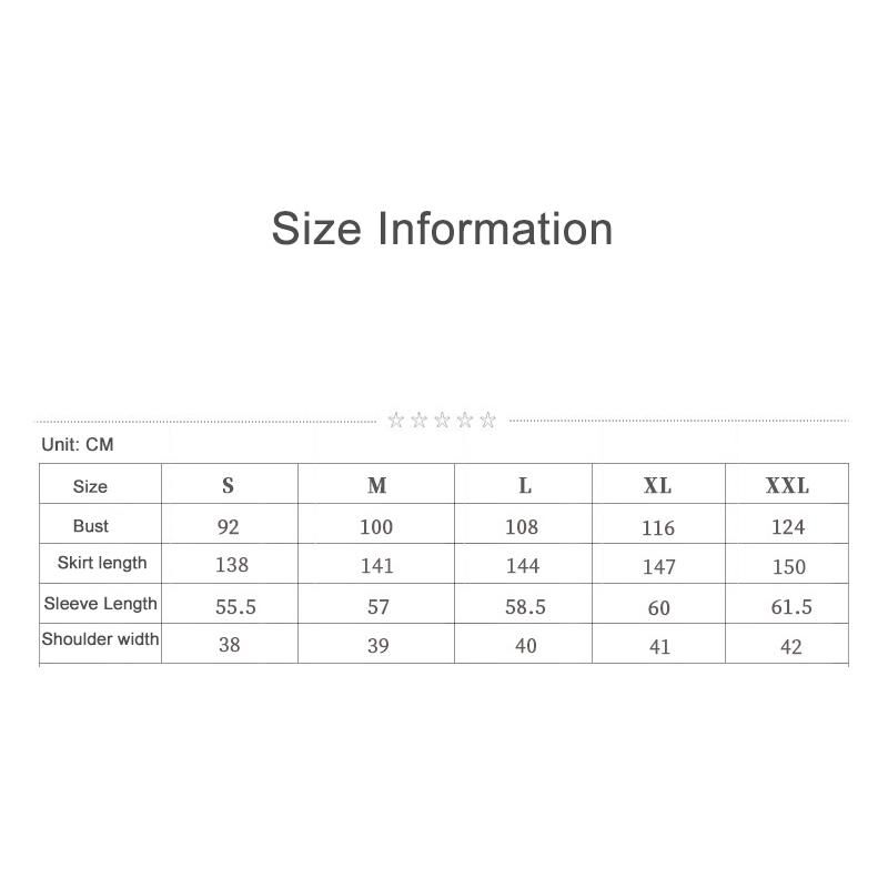 2.Μέγεθος:S, Μπούστο:92cm, Μήκος φορέματος:138cm, Πλάτος ώμου:38cm, Μήκος μανικιού:55.5cm