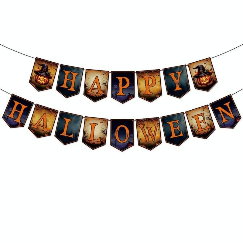 3. Η σημαία είναι τυπωμένη με το μοτίβο "Happy Halloween", το οποίο βοηθά στη δημιουργία μιας γιορτινής και χαρούμενης ατμόσφαιρας