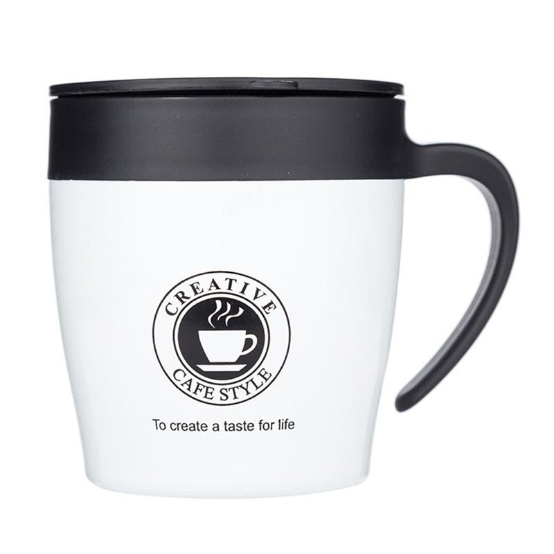 Handle Coffee Mug Stainless Steel Thermos Cups Vacuum Flask Water Bottle Bussiness Portable Thermo Cup(White)