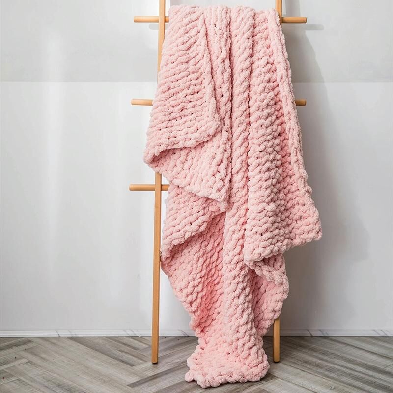Χειροποίητη παχιά μάλλινη πλεκτή κουβέρτα καναπέ Chenille Stick πλεκτή κουβέρτα, μέγεθος: 80 x 100 CM (ροζ)