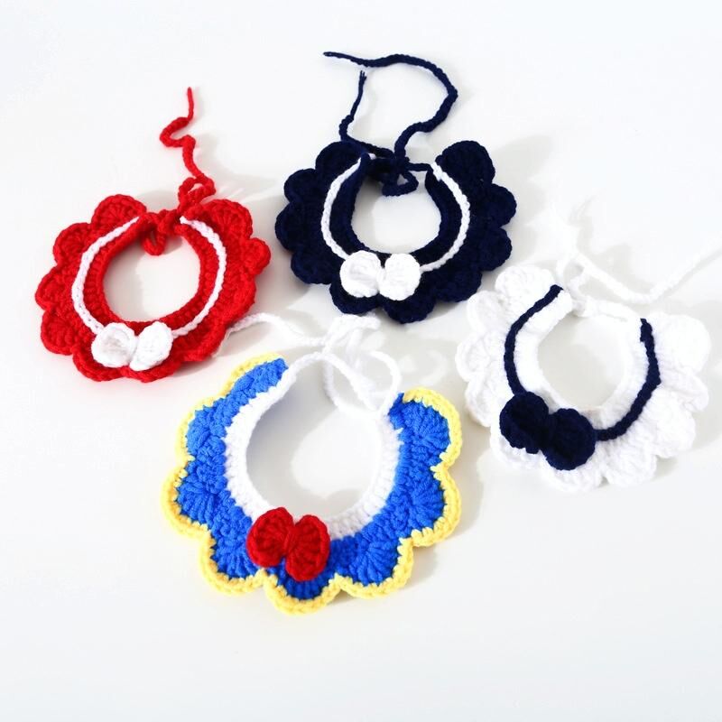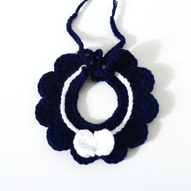 Χειροποίητο μάλλινο πλέξιμο Ρυθμιζόμενο λουλούδι τόξο κόμβο γάτα σκύλος σκύλος Bib αξεσουάρ κολάρο, μέγεθος: M 25-35cm (Navy Blue)