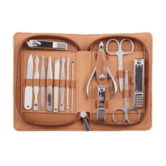 14 In 1 Nail Clippers Set Stainless Steel Beauty Manicure Tool(Brown)