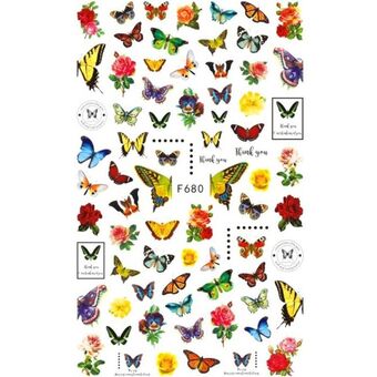 10pcs 3D Adhesive Butterfly Retro Rose Color Nail Art Sticker(F-673)