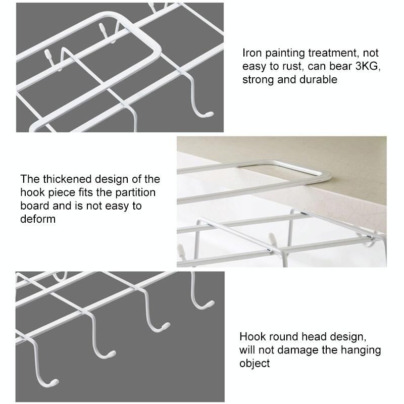 4. Διεύρυνση της ποτηροθήκης με άγκιστρο, κατασκευασμένη από επίπεδο σίδερο υψηλής ακαμψίας, το οποίο μπορεί να κρεμάσει 8 φλιτζάνια ταυτόχρονα, και μπορεί επίσης να κρεμαστεί κάτω από την πόρτα του ντουλαπιού για να αποθηκεύσει κουτάλια, φτυάρι, κ.λπ., με καλό αποτέλεσμα αντοχής φορτίου.