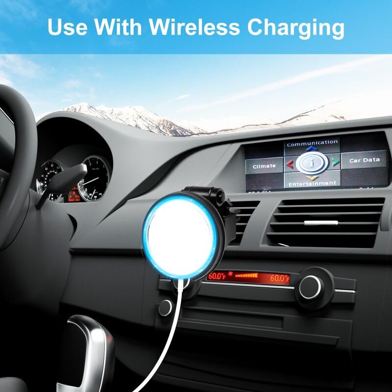 2. Single-handed Installation: Simply place Magsafe Car Mount Charger inside the car mount, you get a wireless charger and car mount, with features coming from the charger itself: Get in and go without stopping to mount your phone.