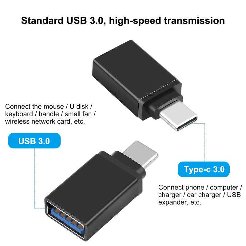 3. Μινιμαλιστικός Σχεδιασμός: Αυτοί οι ελαφριοί προσαρμογείς USB σε USB-C μπορούν να τοποθετηθούν στο πορτοφόλι σας, στο σακίδιό σας, στην τσέπη σας, στη βαλίτσα σας, στο συρτάρι του γραφείου σας ή οπουδήποτε αλλού επιθυμείτε.