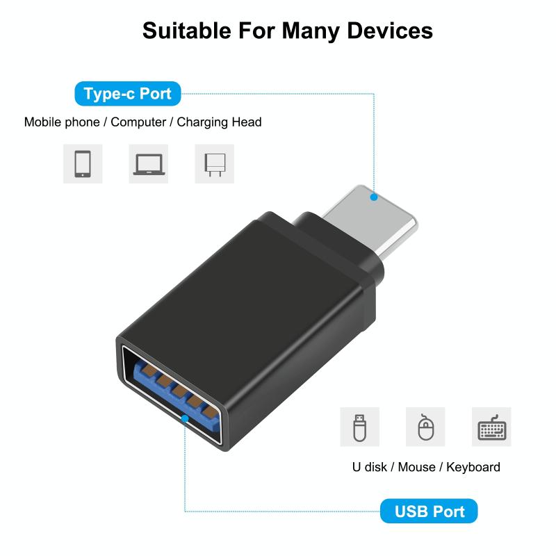 1. Ευρεία Χρήση: Μετατρέψτε οποιαδήποτε θύρα USB-C σε θύρα USB-A και συνδέστε μια μεγάλη γκάμα συσκευών USB-A, όπως εξωτερικούς σκληρούς δίσκους, τηλέφωνα, ποντίκια, εκτυπωτές και άλλα.