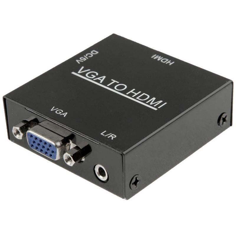 The MINI VGA to HDMI 1080P Scaler Box is designed to upscale analog video signal from PC input source to digital HDMI output, up to 720p or 1080p. Besides video upscaling, the scaler box also converts input audio signal from L/R to digital formats, then output to HDMI combining with the video