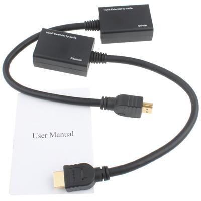 This kind of HDMI Extender by CAT-5e/6 uses two pieces of CAT-5e/6 cables to extend the HDTV display up to 30 meters for 1080p. It not only breaks the limitation of the HDMI cable transmission length,but also CAT-5e/6 has more flexibility and convenience in cable construction.