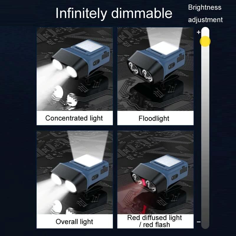 3. Ρύθμιση φωτεινότητας: παρατεταμένη πίεση του κουμπιού για άνοιγμα του κύριου φωτός ή του πλευρικού φωτός για άνοιγμα της λειτουργίας άπειρης ρύθμισης, ρυθμίστε στο φωτεινότερο/σκοτεινότερο αναβοσβήνοντας μία φορά, παρατεταμένη πίεση του κουμπιού ξανά για ρύθμιση της φωτεινότητας προς την αντίθετη κατεύθυνση και αφήστε το κουμπί για να διατηρήσετε τη φωτεινότητα στο επιθυμητό επίπεδο