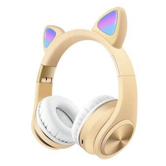 Cat Ears Bluetooth Wireless Headphones Gaming Headset with Light(Gold)