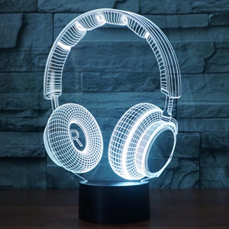 Ακουστικό σχήματος 3D διακόπτη αφής ελέγχου LED φως, 7 χρώματα αποχρωματισμού Δημιουργική οπτική στερεοφωνική λάμπα επιτραπέζιας λάμπας νυχτερινό φως