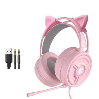 G35 Cute Cat RGB Head-mounted Wired Gaming Earphone(Pink)