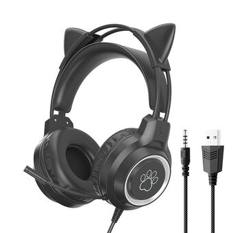 G35 Cute Cat RGB Head-mounted Wired Gaming Earphone(Black)