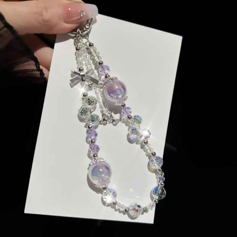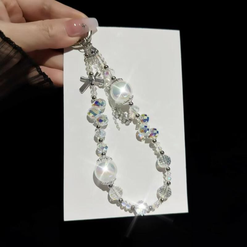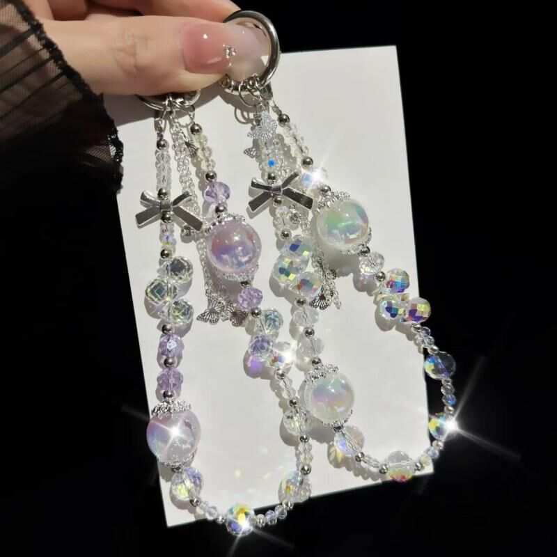 Heidi Bead Bow Waterdrop Crystal Phone Chain(White)