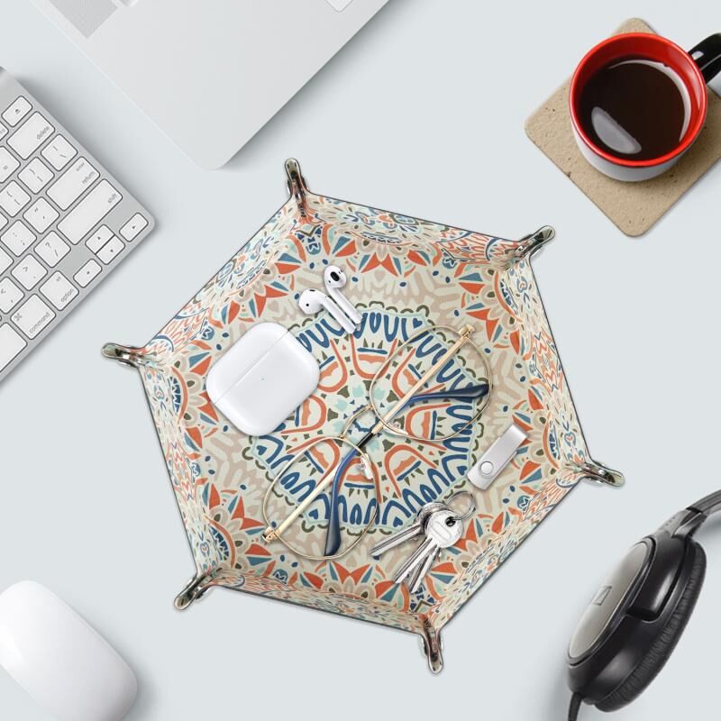 Εξαγωνικό Επιτραπέζιο Κουτί Αποθήκευσης PU, Δίσκος για Διάφορα, Μέγεθος: 7 ίντσες (Μαύρο)