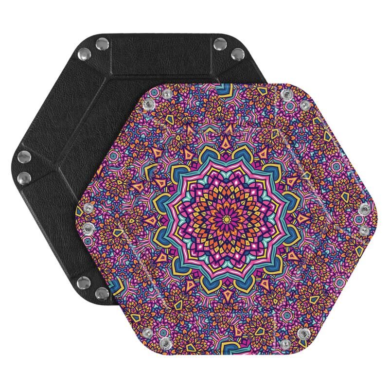 Εξαγωνικό Επιτραπέζιο Κουτί Αποθήκευσης PU, Δίσκος για Διάφορα, Μέγεθος: 7 ίντσες (Μαύρο)