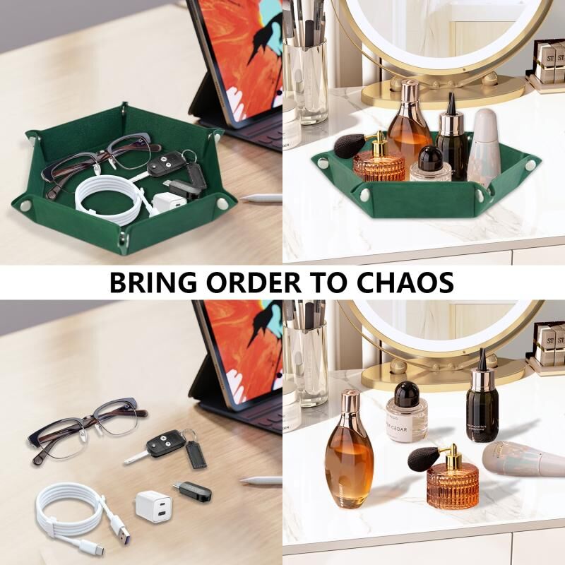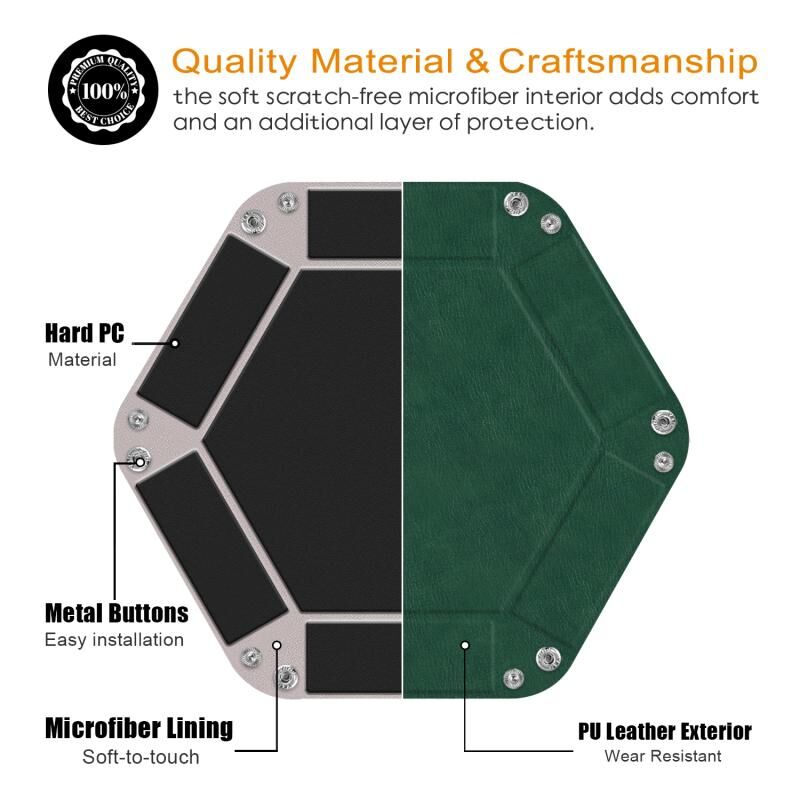 Εξαγωνικό Επιτραπέζιο Κουτί Αποθήκευσης PU, Δίσκος για Διάφορα, Μέγεθος: 7 ίντσες (Μαύρο)