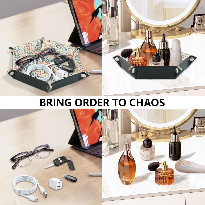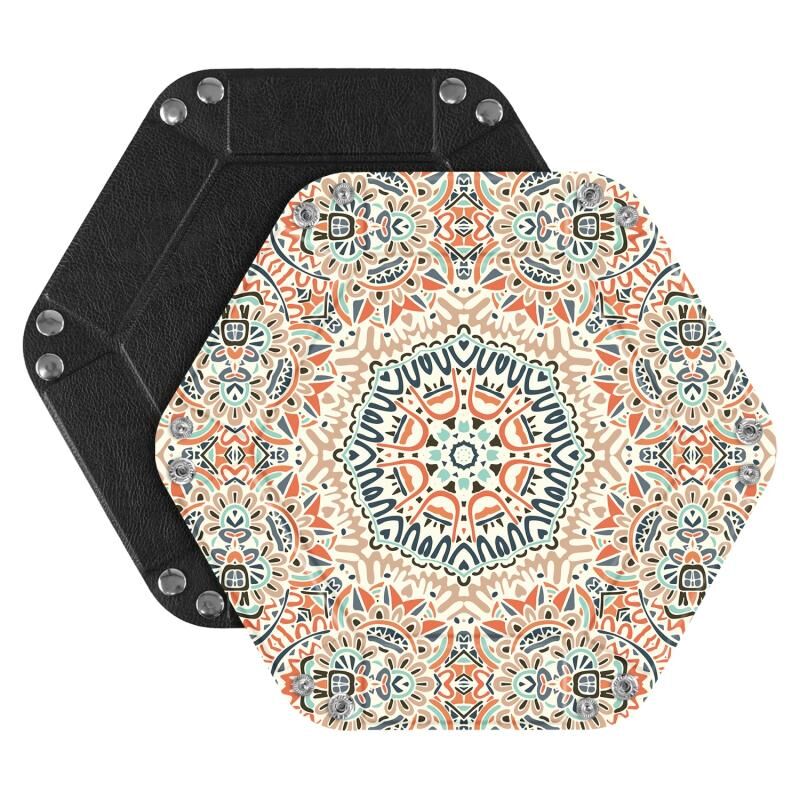 Εξαγωνικό Επιτραπέζιο Κουτί Αποθήκευσης PU, Δίσκος για Διάφορα, Μέγεθος: 8 ίντσες (Μαύρο)