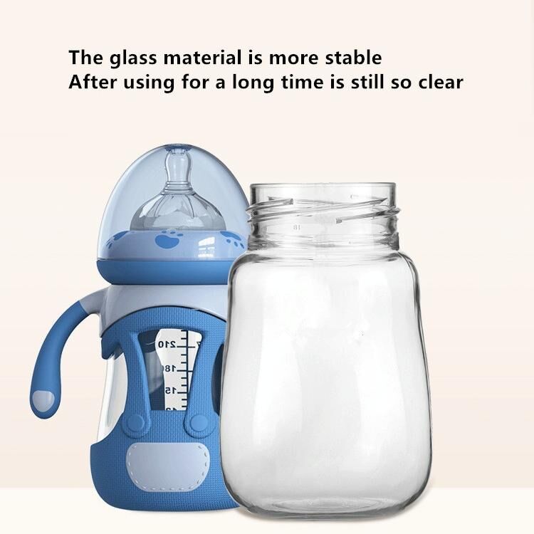 Μπουκάλι για μωρά από γυαλί υψηλής θερμικής αντοχής με σιλικόνη θήκη, Χωρητικότητα: 240ml (Πράσινο)