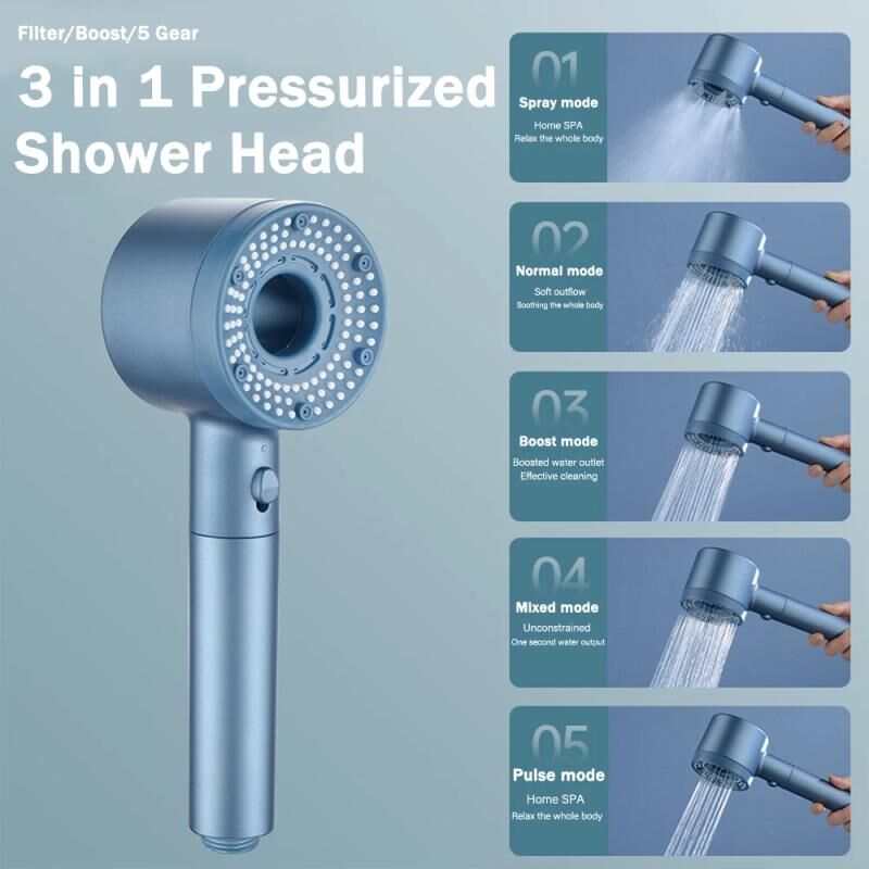1. Three-in-one shower design, filter/boost/five-speed adjustment, comfortable and non-irritating to the skin