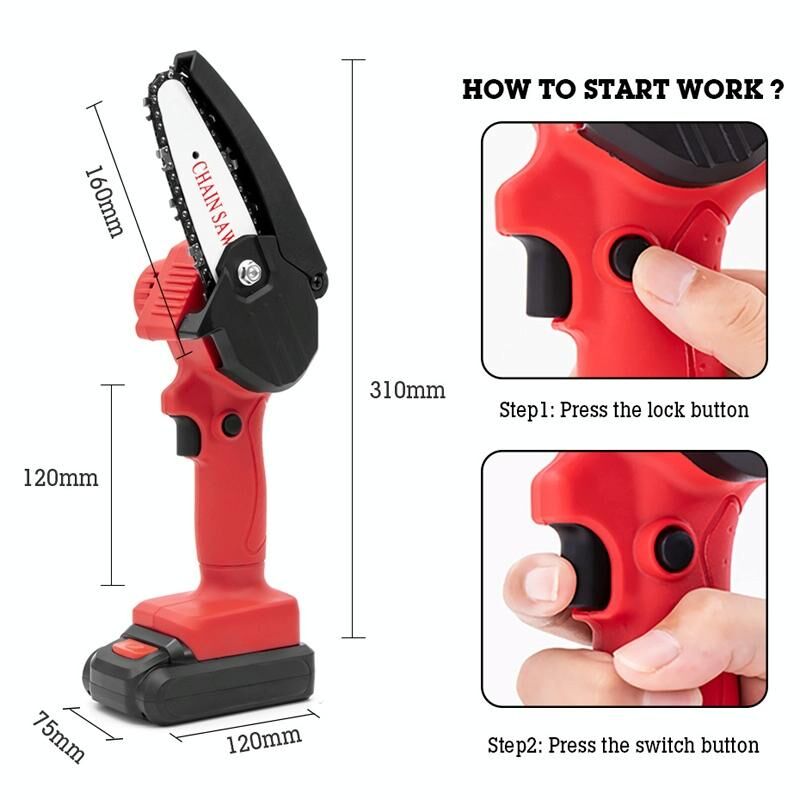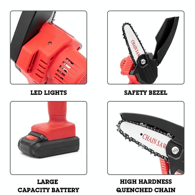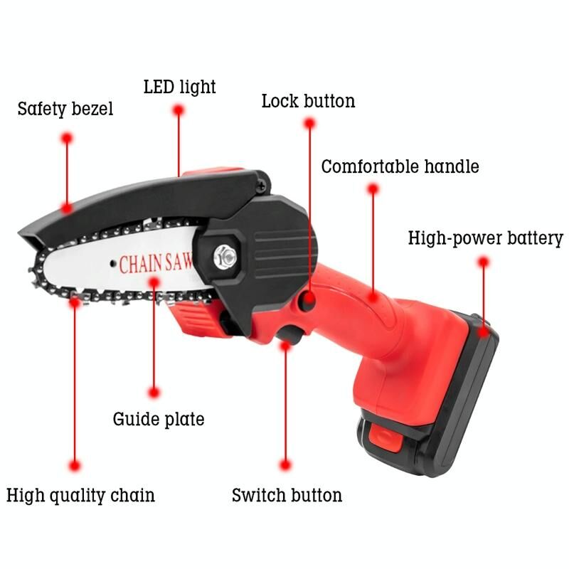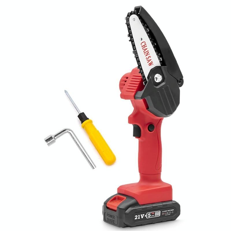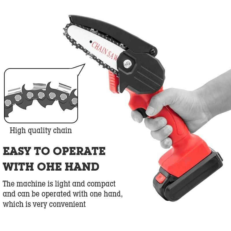 Μίνι ηλεκτρικό αλυσοπρίονο μπαταρίας HILDA, χωρίς καλώδιο, εργαλεία υλοτομίας, πλαστική συσκευασία, Μοντέλο: EU Plug Με 1 μπαταρία Κόκκινο (HILDA)