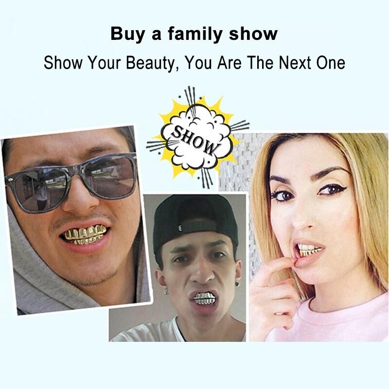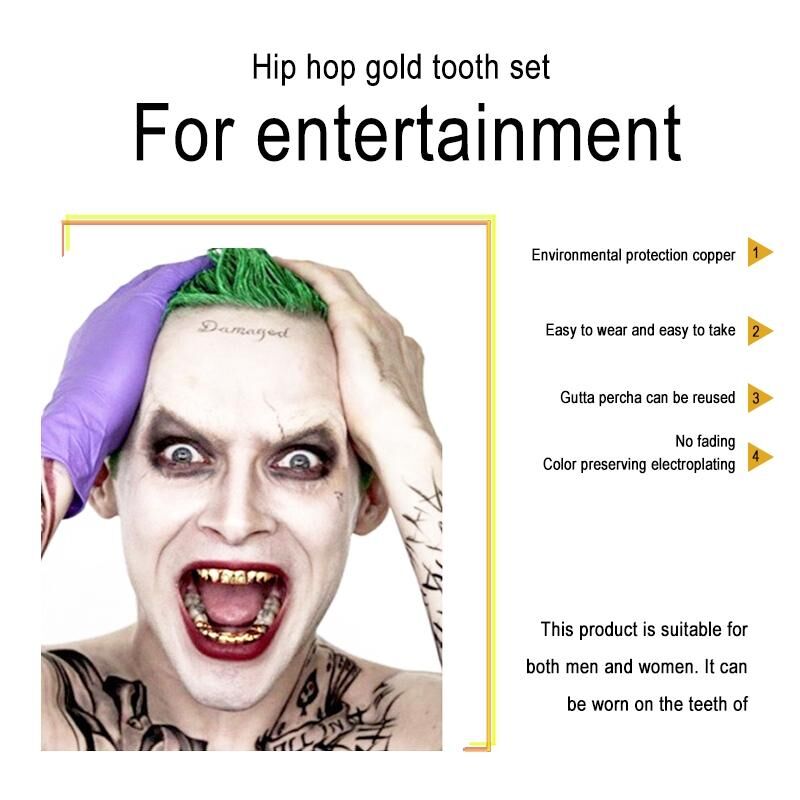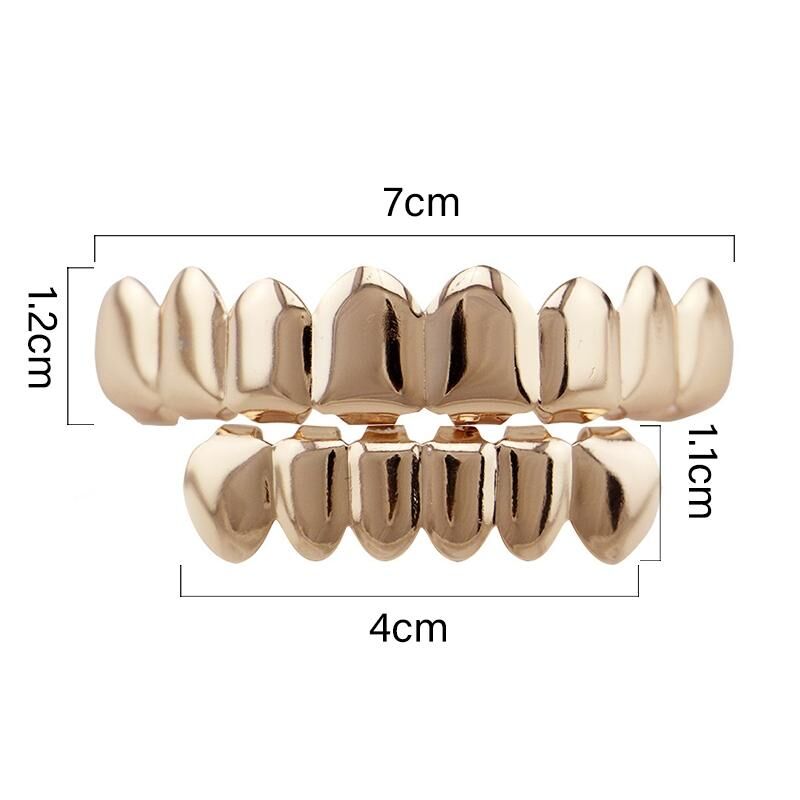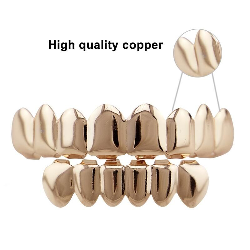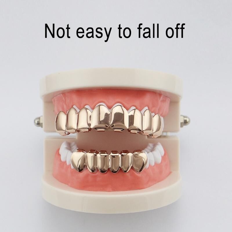 Hip Hop Accessories Gold Tooth Set Real Gold Plating Smooth Upper Eight Lower Six Denture Set(Rose Gold)