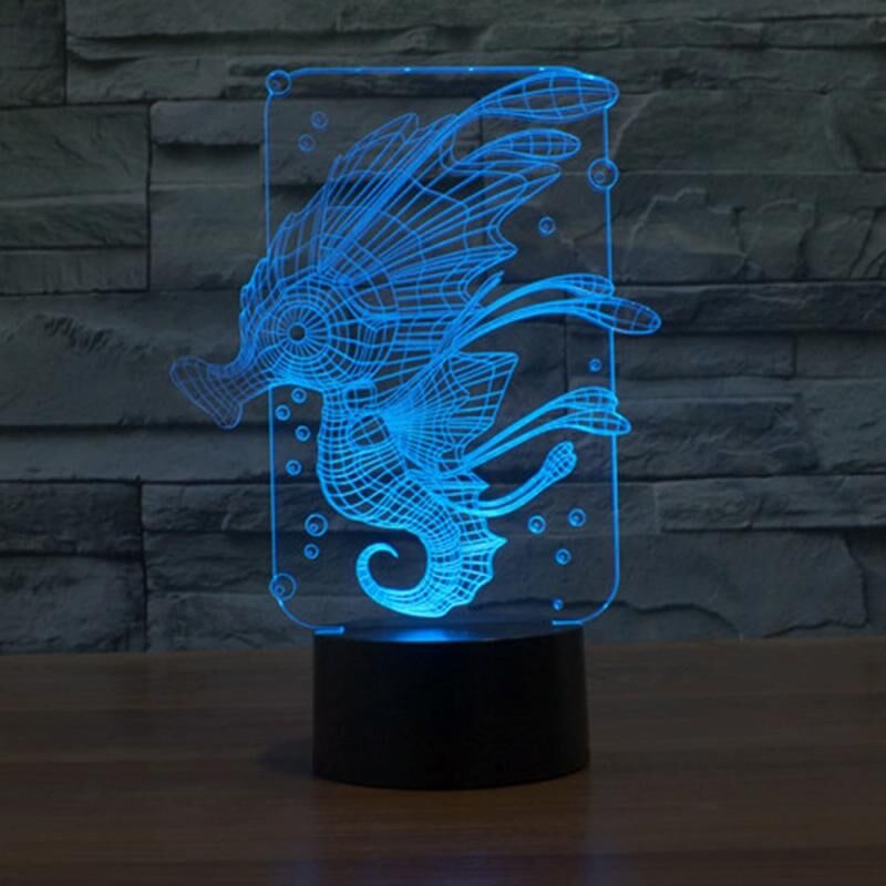 Φωτιστικό LED με διακόπτη αφής 3D στυλ Ιππόκαμπου, αλλαγή 7 χρωμάτων, δημιουργική οπτική στερεοσκοπική λάμπα, επιτραπέζια λάμπα, νυχτερινό φως.